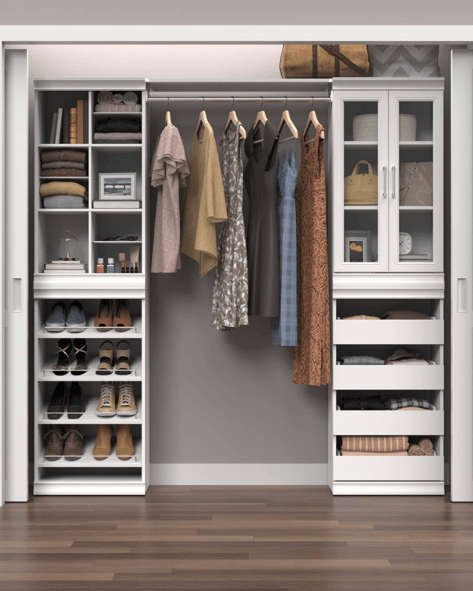 If you’re on a budget, and really want a dresser in your closet that contains multiple drawers, then consider a fabric version—like this 4-door fabric dresser by Amazon Basics. It’s affordable yet elegant and fits even in the smallest of closets.